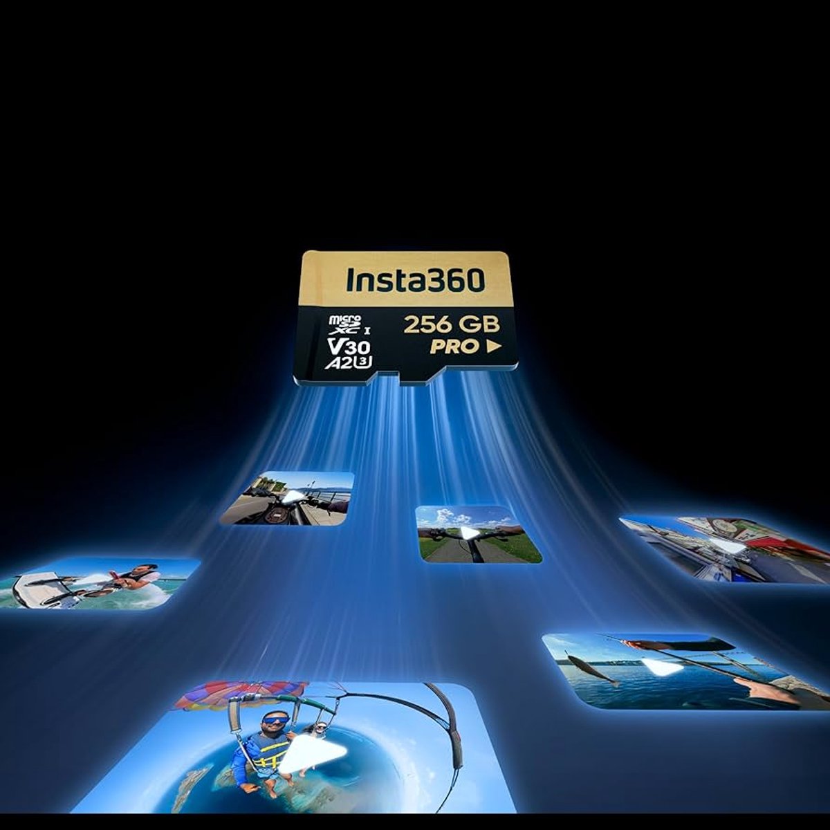 De 256GB SD-kaart biedt snelle gegevensoverdracht dankzij de UHS-1 klasse en V30 rating, ideaal voor 8K-video’s en hoge beeldkwaliteit. Compatibel met alle recente Insta360 modellen, zoals de X4, X3, ONE RS en meer, en geschikt voor langdurige opnames en intensief gebruik.